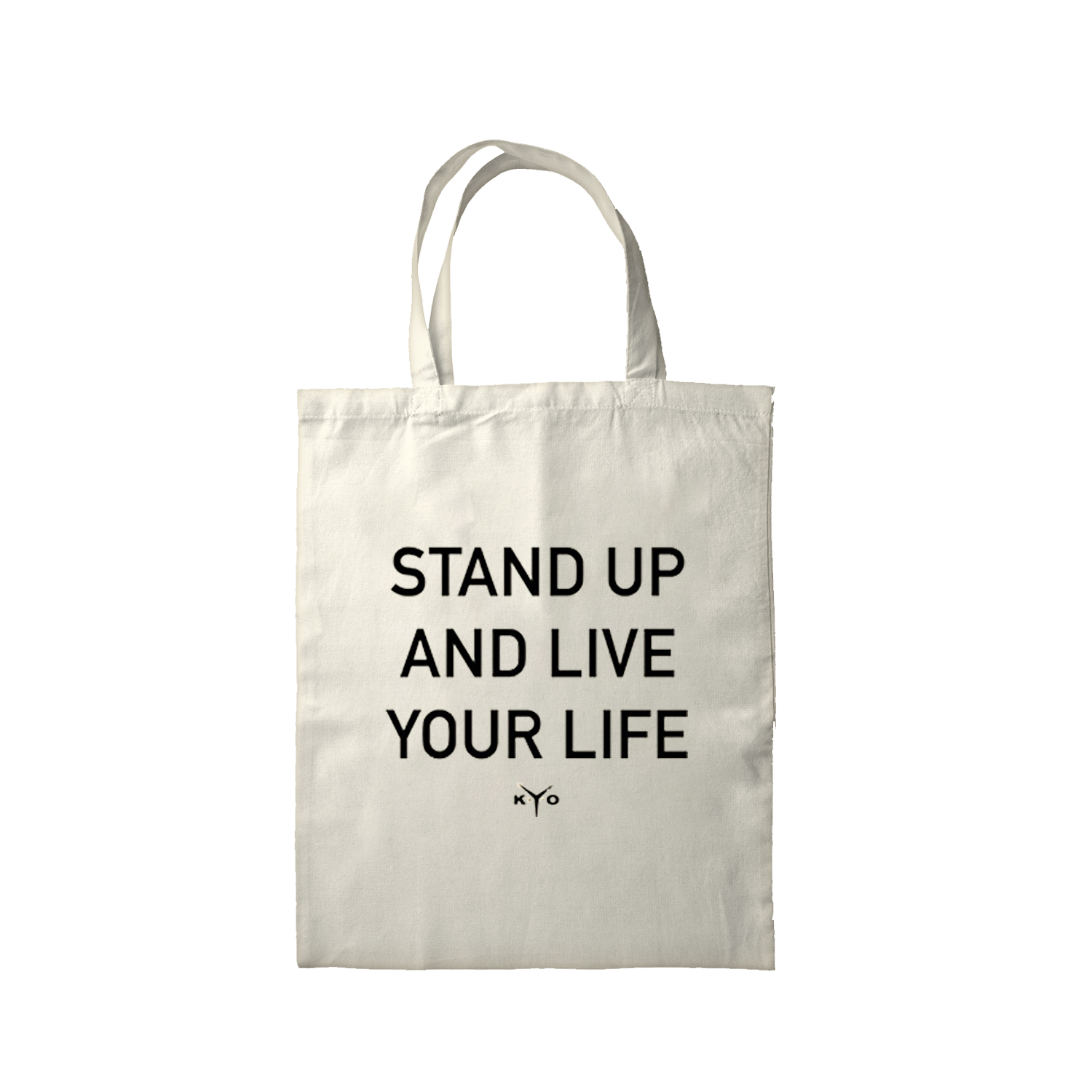 Tote Bag 100% coton, écru, Impression noir, paroles de la chanson Stand Up “STAND UP AND LIVE YOUR LIFE”